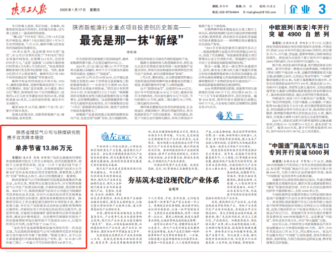 近日,从陕西省工业和信息化厅获悉,陕煤研究院铜基分子筛成功入选2024年度陕西省三“首”产品——首批次新材料,填补了区域产业空白。研究院特种分子筛装置陕煤研究院铜基分子筛相关技术成果经陕西省化工学会鉴定达到“国际先进”水平,先后荣获陕西石化科学技术奖一等奖、陕西省...