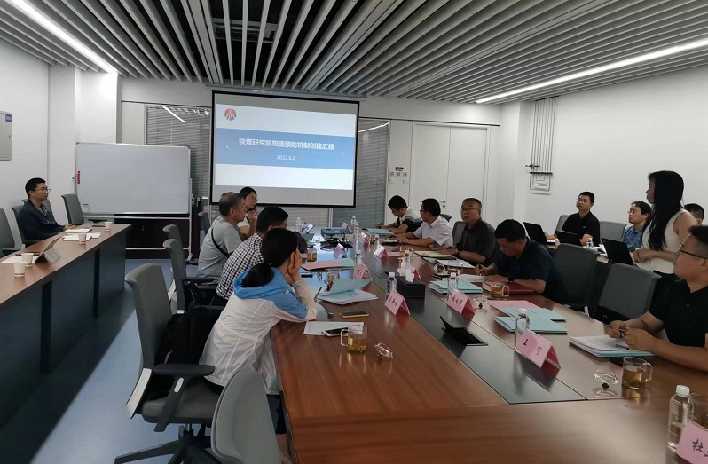 2022年6月2日,研究院在西安总部研发基地召开了研究院双重预防机制建设评审会,会议由研究院安全环保部部长史乾主持,陕煤集团安全监察部总经理王西才、主管王宁、研究院副院长宗益滨、张生军同志以及业务管理相关部门、评价单位相关人员参加了会议。