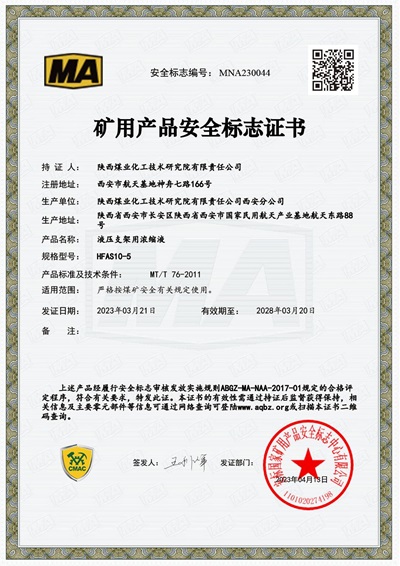 陕煤研究院四款液压支架用产品取得矿用产品安全标志证书